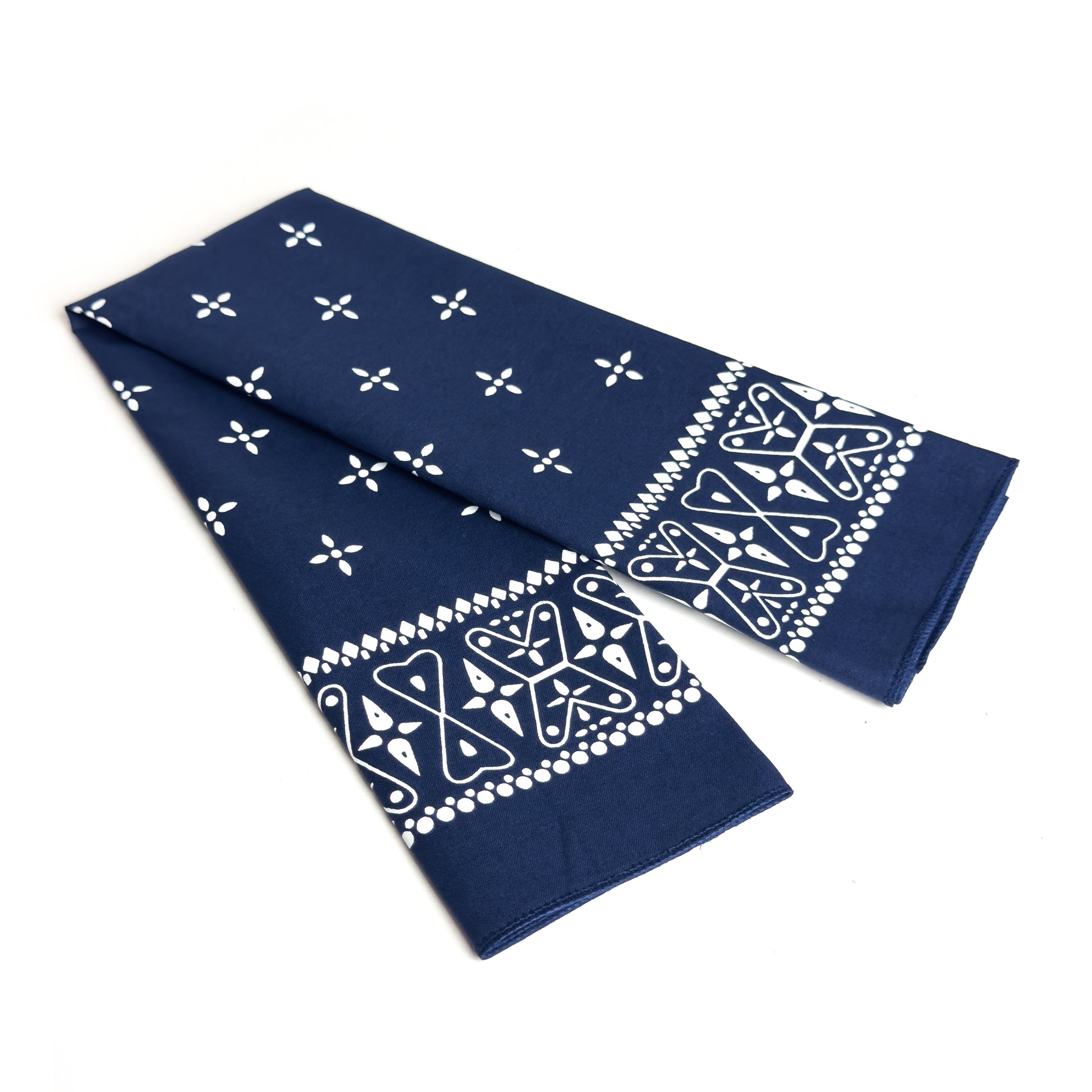 OG cross bandana white on navy.
